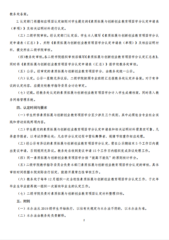 素质拓展与创新创业教育项目学分认定办法